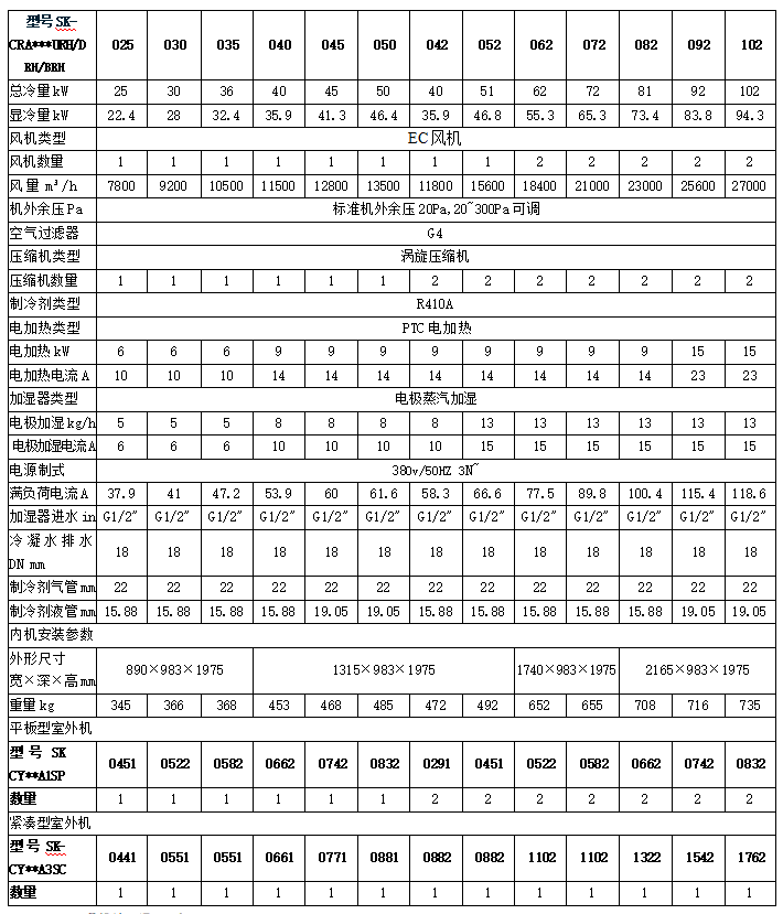 ④ 機組標準配置(包含(hán)加熱加濕)最(zuì)大電流,現拍配電參考。