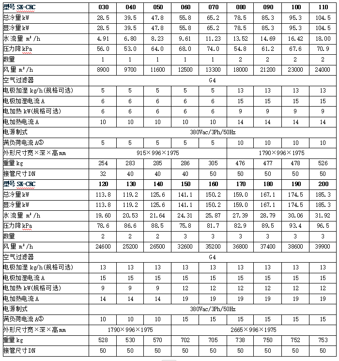 ② 標準機外(wài)餘(yú)壓20Pa,20~300Pa 可調。其它餘壓要求谘詢我司。