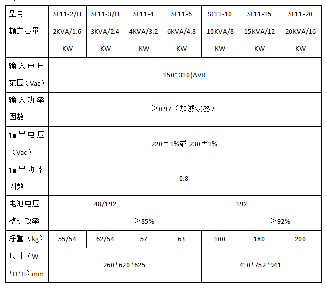 功率範圍:2KVA~20KVA